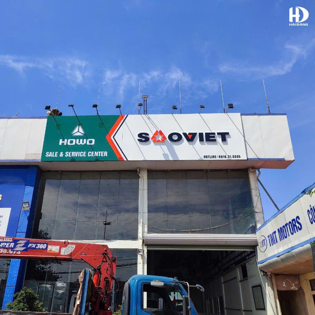 HOÀN THÀNH BÀN GIAO CÔNG TRÌNH BIỂN ALU KHUNG THÉP HỘP CHỮ MICA SHOWROOM Ô TÔ SAO VIỆT