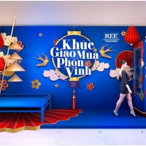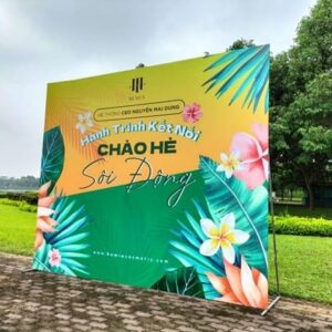 - Backdrop vật lý: Thường in trên bạt hiflex, vải hoặc khung gỗ. Có thể kết hợp đèn LED hoặc màn hình điện tử để tăng tính hiện đại.